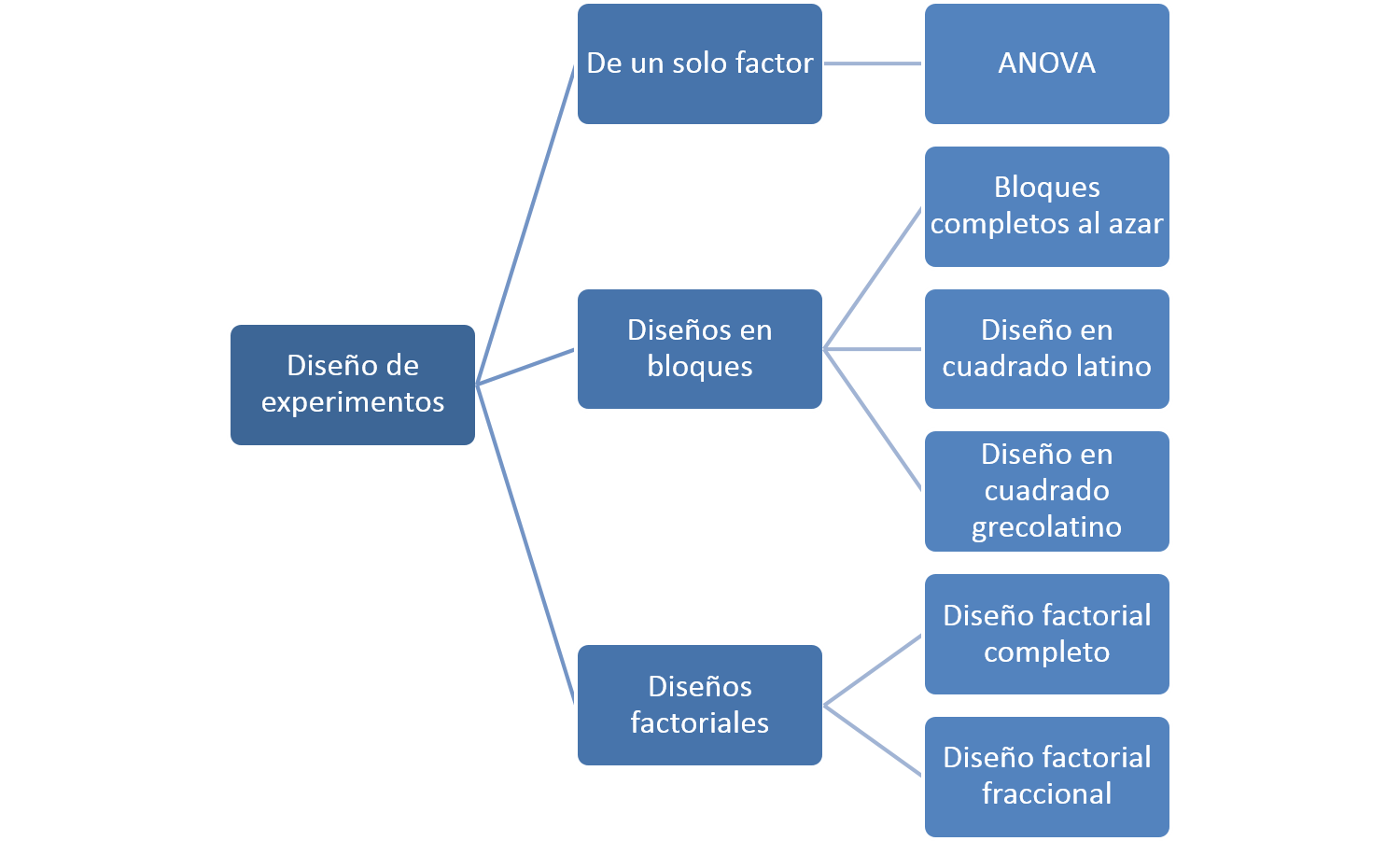 Algunos de los tipos de diseños de experimentos son los siguientes: