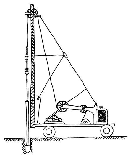 Este sistema empezó a utilizarse en China en el 4000 A.C., consistiendo en un balancín que se contrapesaba con un grupo de hombres que efectuaban el tiro en un extremo de una cuerda, mientras que de otra colgaba la sarta de perforación construida con cañas de bambú.