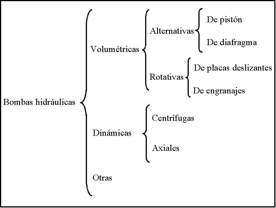 Las bombas se pueden clasificar atendiendo a diversos criterios. En la figura siguiente se establece la clasificación habitual de las bombas atendiendo a su forma de trabajo.