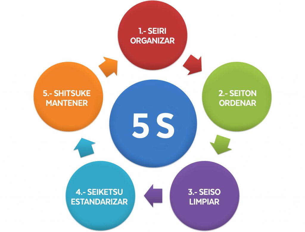 Las cinco S constituye una práctica de Calidad ideada en Japón referida al “Mantenimiento Integral” de la empresa, no solo de maquinaria, equipo e infraestructura, sino del mantenimiento del entorno de trabajo por parte de todos. Se inició en Toyota en los años 1960 con el objetivo de lograr lugares de trabajo mejor organizados, más ordenados y más limpios de forma permanente para generar una mayor productividad y un mejor entorno laboral.