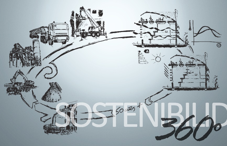 Debe también remarcarse otro hecho significativo. Frente a la estrategia seguida por la mayoría de materiales de construcción que sólo declaran los parámetros medioambientales hasta el final del proceso productivo sin tener en cuenta los impactos del resto del ciclo de vida, lo que se conoce como de “cuna a puerta”, las declaraciones ambientales de los productos prefabricados de hormigón se basarán en el ciclo completo, es decir, la opción denominada “de cuna a tumba”, permitiendo que todos los consumidores conozcan todos los impactos obtenidos en el ciclo de vida total, incluso hasta la fase de demolición o deconstrucción de la obra, o la posible reutilización de elementos en otra construcción en el futuro.