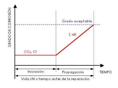 Fases de iniciación y propagación de la corrosión (Tuutti, 1982)