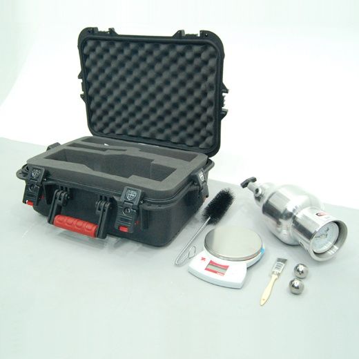 El aparato tiene unos dispositivos para tararse, determinando la humedad de la arena por cualquier método de laboratorio.