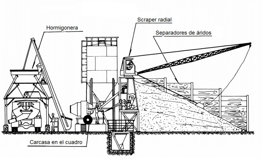 En el vídeo siguiente podemos ver una planta de hormigonado de tipo radial que utiliza radios rascantes.