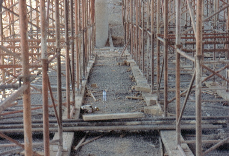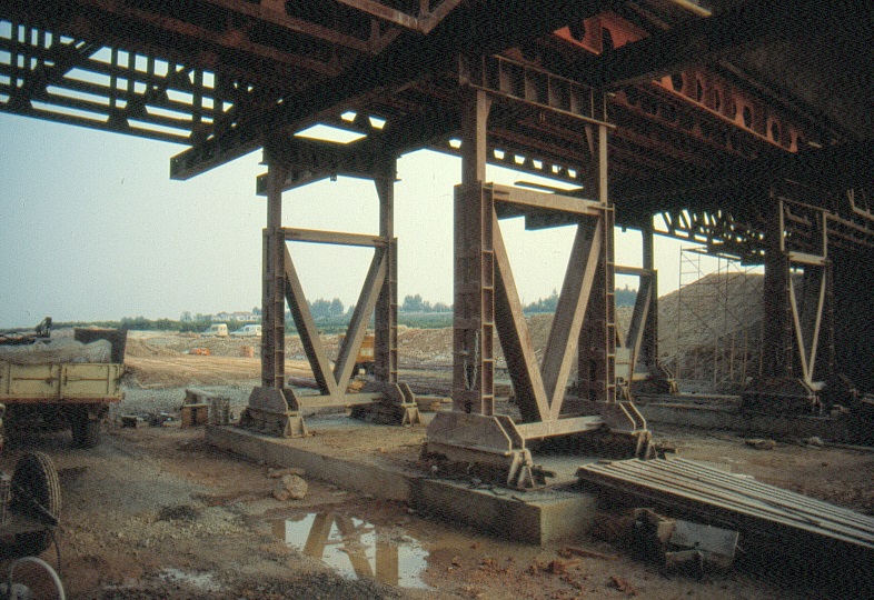 Una cimbra no deja de ser una estructura que debe estar perfectamente apoyada sobre un terreno con suficiente capacidad portante que, además, minimice sus asientos diferenciales. Normalmente, se suele exigir un mínimo de 0,10 MPa de tensión admisible al terreno que sirve de apoyo a una cimbra tubular. Para ello se compacta el suelo y se le suele mejorar con unos 30 cm de un material granular (grava-cemento o zahorras), para facilitar el drenaje en caso de lluvias. También se deben colocar durmientes de madera paralelos a la directriz del tablero para apoyar los pies de las torres. Este elemento sirve para repartir las cargas y reducir la tensión transmitida.
