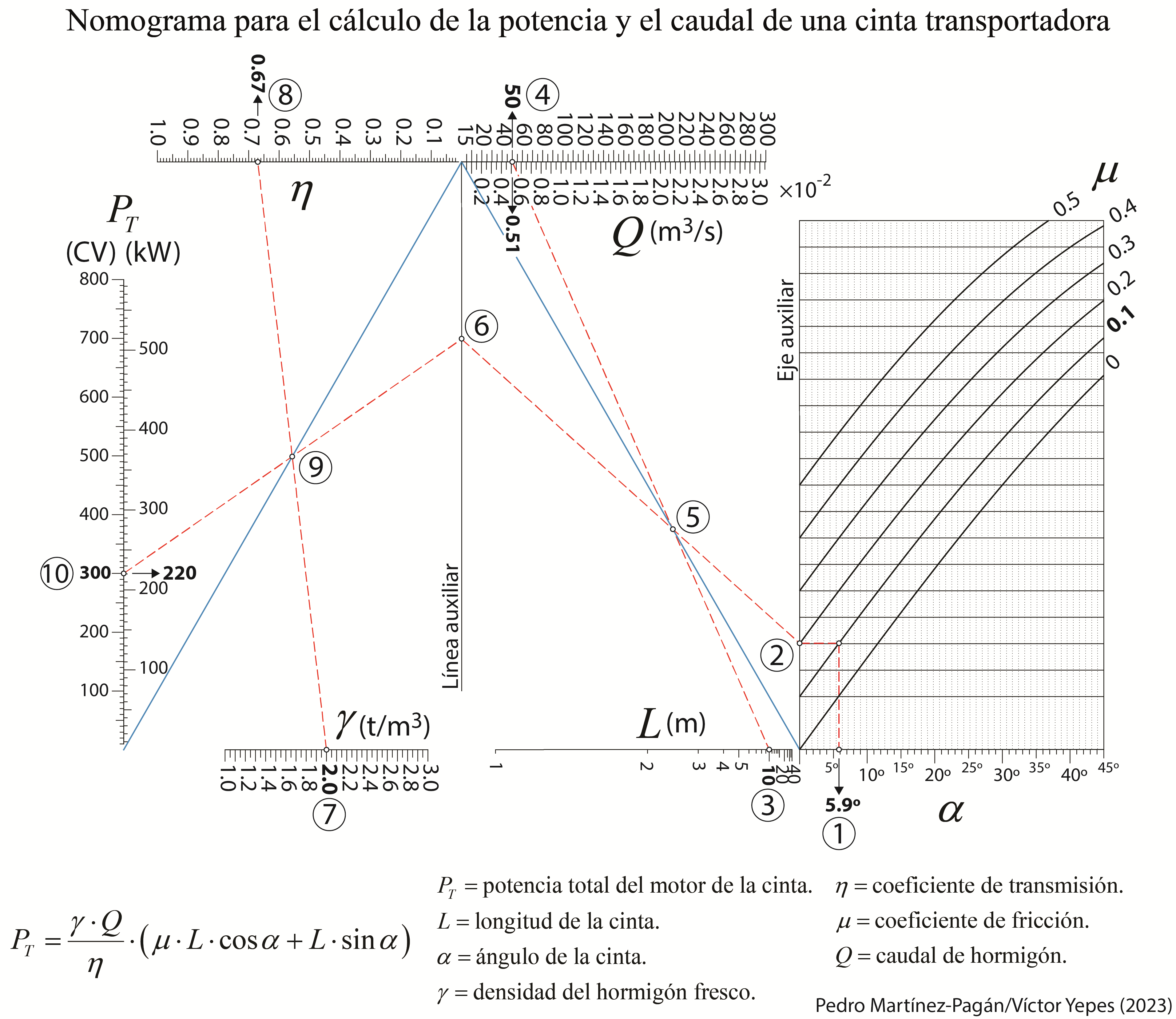 Os dejo también un nomograma que permite resolver este mismo problema. Lo he desarrollado junto con el profesor Pedro Martínez Pagán, de la Universidad Politécnica de Cartagena. En este caso, se ha resuelto el ejercicio con otros datos de partida. Espero que os sea útil.
