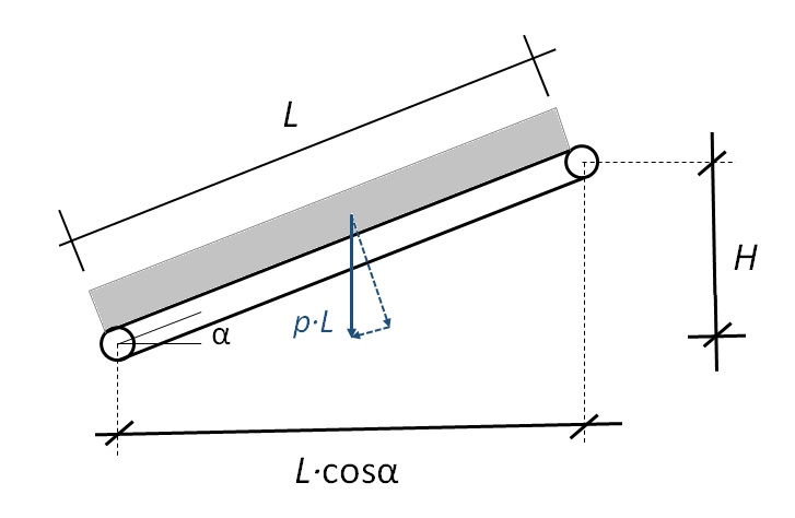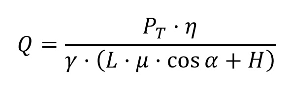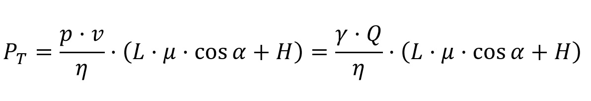 Por otra parte, la potencia necesaria para vencer el desnivel es el producto del peso del material por la velocidad de ascensión, que es v·senα, quedando la siguiente expresión: