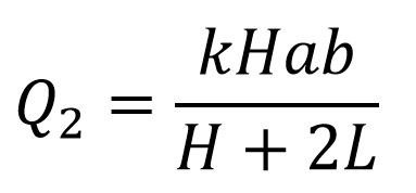 Para resolver el problema emplearemos la Ley de Darcy, que establece que la velocidad de un fluido en medio poroso es proporcional al gradiente hidráulico. Multiplicando esa velocidad por la sección que atraviesa el flujo, tendremos la evaluación del caudal según la siguiente expresión, donde «Q» es el caudal, «k» es el coeficiente de permeabilidad», «i» es el gradiente hidráulico y «S» es la sección atravesada por el flujo.