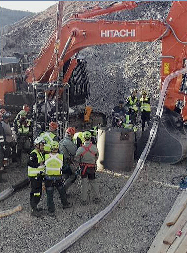 Comienzo de los trabajos realizados por la Brigada de Salvamento Minero. Fuente: Ángel García, 2019