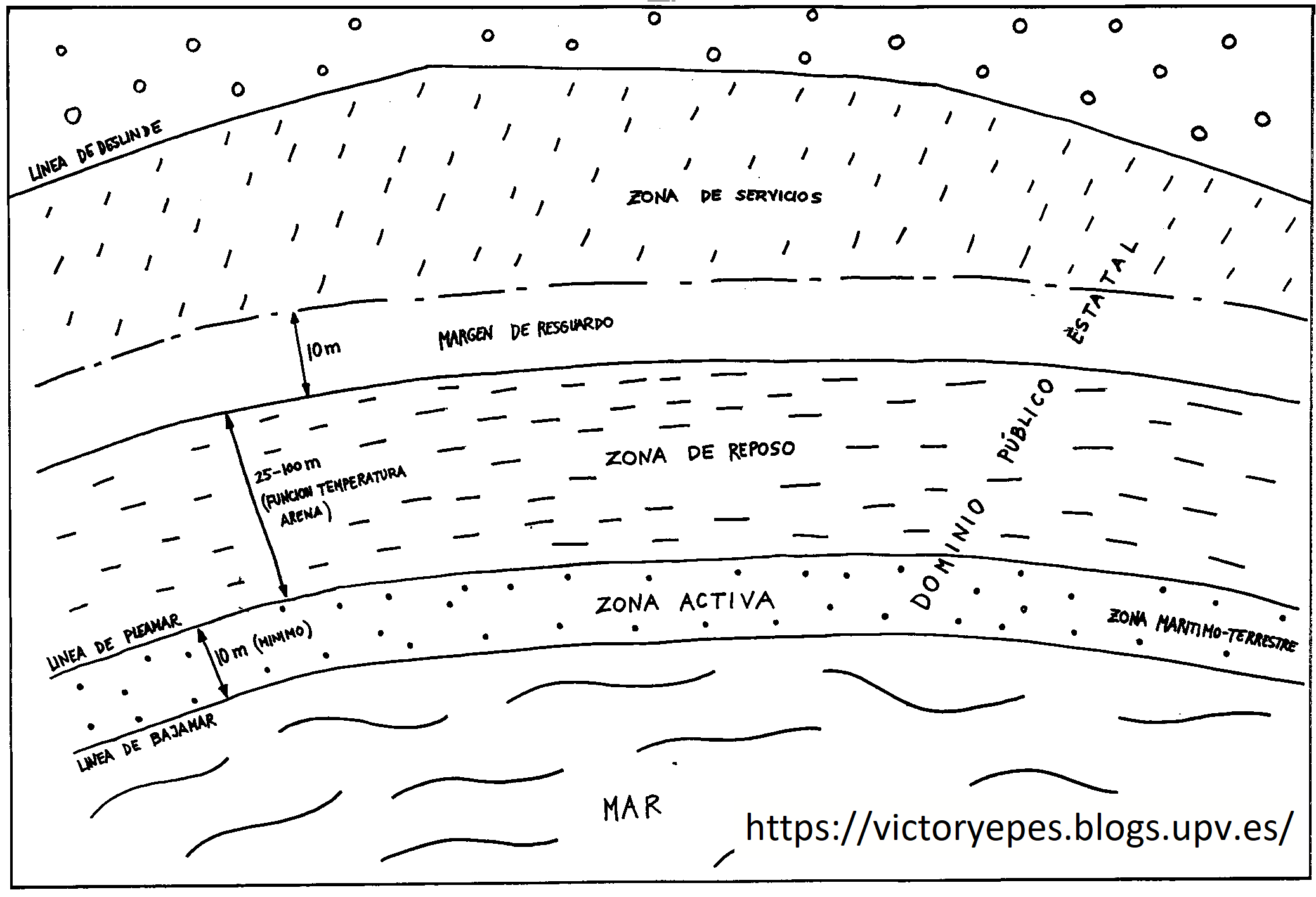 Figura 1. Zonificación de una playa típica del Mediterráneo