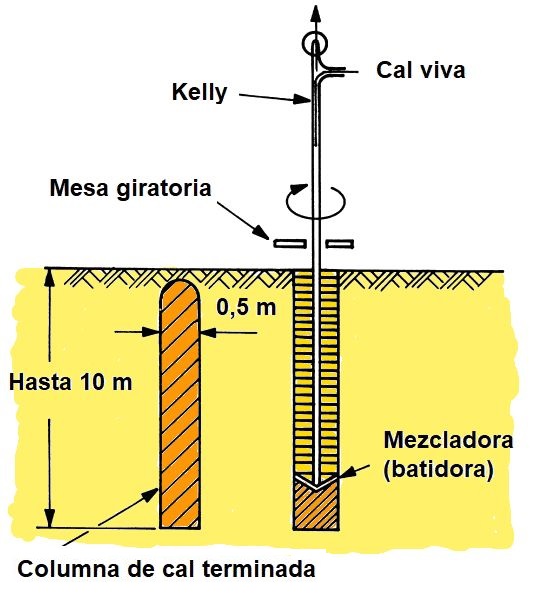 Existen dos posibilidades de métodos constructivos, en función de que se desplace o no el suelo blando. La primera es el método por desplazamiento, en el cual se introduce un tubo de acero con punta cerrada, seguido por la inserción del geotextil y el relleno granular. En este caso, la punta se abre cuando la tubería se levanta. Es un procedimiento útil en suelos muy blandos, con diámetros aproximados de 0,80 m y separación entre columnas de 1,5 a 2,5 m.