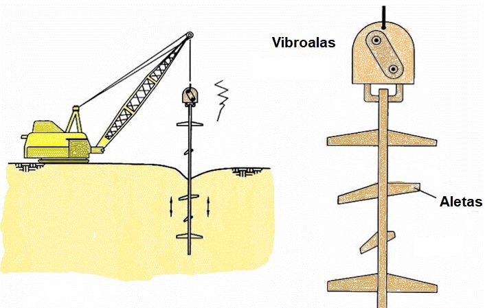El método vibroalas, “Vibro-Wing” en inglés, constituye un procedimiento de mejora de suelos granulares mediante compactación por vibración desarrollado en Suecia. La sonda consiste en una varilla de acero de hasta 15 m de longitud con unas placas radiales soldadas, a modo de alas, de 0,80 a 1,00 m de largo, separadas unos 0,50 m entre sí. El vibrador de la varilla se opera desde el exterior con maquinaria convencional. Se obtiene una alta densidad relativa en arenas medias y finas. El método se emplea en cimentaciones, puertos, rellenos hidráulicos, presas, cimentación de maquinaria y de estructuras especiales.