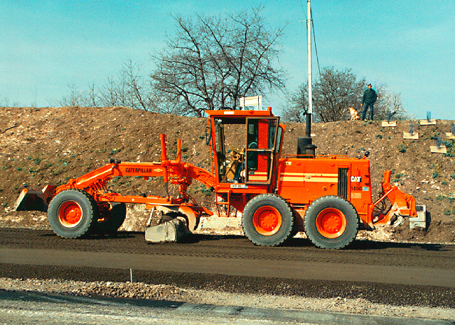 Lo habitual es fabricar la gravaemulsión en centrales continuas, de forma similar a la fabricación de mezclas bituminosas en frío o de otras gravas tratadas. Estas centrales tendrán dispositivos adecuados para dosificar por separado la emulsión, el agua y los áridos. La mezcla se debe transportar en camiones de caja basculante, lisa y completamente limpia. Antes de extender la gravaemulsión, se debe comprobar que la capa subyacente tiene la densidad y geometría correctas. La extensión con calidad la realiza una extendedora, pero una motoniveladora tiene la ventaja de poder reperfilar (Figura 2). El espesor de la capa es de 6 a 15 cm, que se compacta con rodillos vibratorios o compactadores de neumáticos con alta carga por rueda. La compactación puede esperar sin problemas varias horas después del extendido. En caso de abrir al tráfico antes de extender la capa de rodadura, debe aplicarse un riego de sellado, con una dotación de betún residual de 200 a 500 g/m2 y arena.