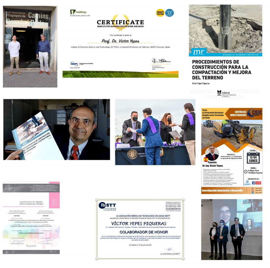 Fue un orgullo este año conocer que la Comisión de Premios del XXV Congreso Internacional de Dirección e Ingeniería de Proyectos nos otorgó el Premio Jaume Blasco a la Innovación 2021 a la comunicación «Consideración de la incerteza de multi-disciplinas en la determinación de criterios sostenibles de caminos rurales usando la lógica neutrosófica«, cuyos autores han sido Leonardo Sierra, Felipe Araya y Víctor Yepes. Otro reconocimiento recibido fue el nombramiento como Colaborador de Honor de la Asociación Ibérica de Tecnología sin Zanja IbSTT, distinción aprobada por unanimidad por la Asamblea General de Socios. También recibí el reconocimiento a la labor de revisión de artículos científicos «2020 Outstanding Reviewer Awards» en mayo de este año.