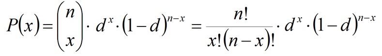 Sean n máquinas iguales trabajando en paralelo, con una disponibilidad intrínseca d. Si se dispone de un conjunto suficientemente grande de unidades, una fracción d de ellas se encontrarán en disposición, y otra fracción (1-d) no operativas. Si se extrae una muestra n de ellas -las que forma nuestro equipo-, la probabilidad de que se encuentren x máquinas en disposición sigue una distribución binomial: