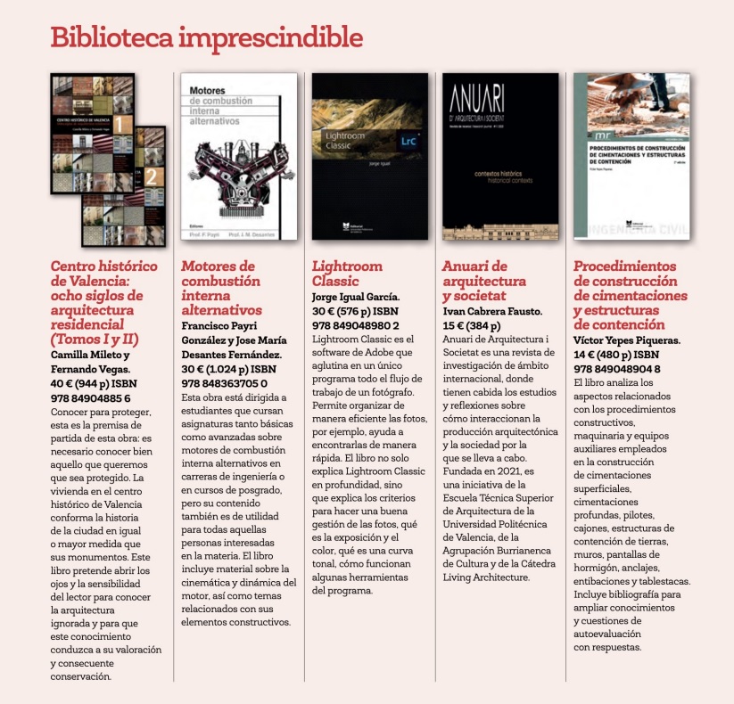 Es un honor que la revista Publishers Weekly, en su número de abril del 2022, haya destacado uno de mis libros: Procedimientos de construcción de cimentaciones y estructuras de contención, como uno de los cinco ejemplares imprescindibles dentro de la producción editorial de la Universitat Politècnica de València. El libro tiene 480 páginas, 439 figuras y fotografías, así como 430 cuestiones de autoevaluación resueltas.