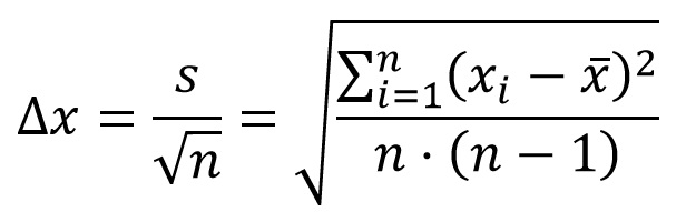 Teniendo en cuenta las propiedades de la distribución normal, el 95,45% de los valores probables de la media es que se encuentren en el intervalo de ±2Δx de la media.