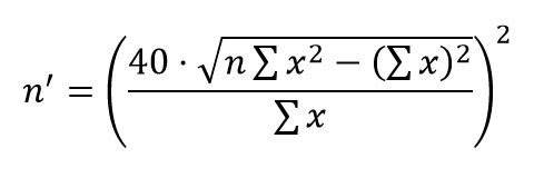 Si el número inicial de observaciones, n, es insuficiente al aplicar la fórmula, entonces se debe aumentar las observaciones a n’ y volver a comprobar.