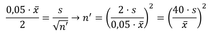 Supongamos, por ejemplo, que el error no sobrepase el 5%, con el nivel de confianza del 95,45%, entonces, el número n’ de observaciones será: