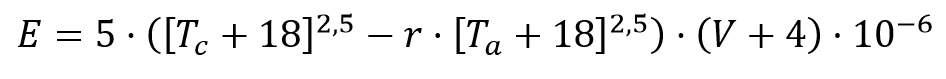 La norma ACI 305R proporciona la siguiente fórmula para calcular la tasa evaporación: