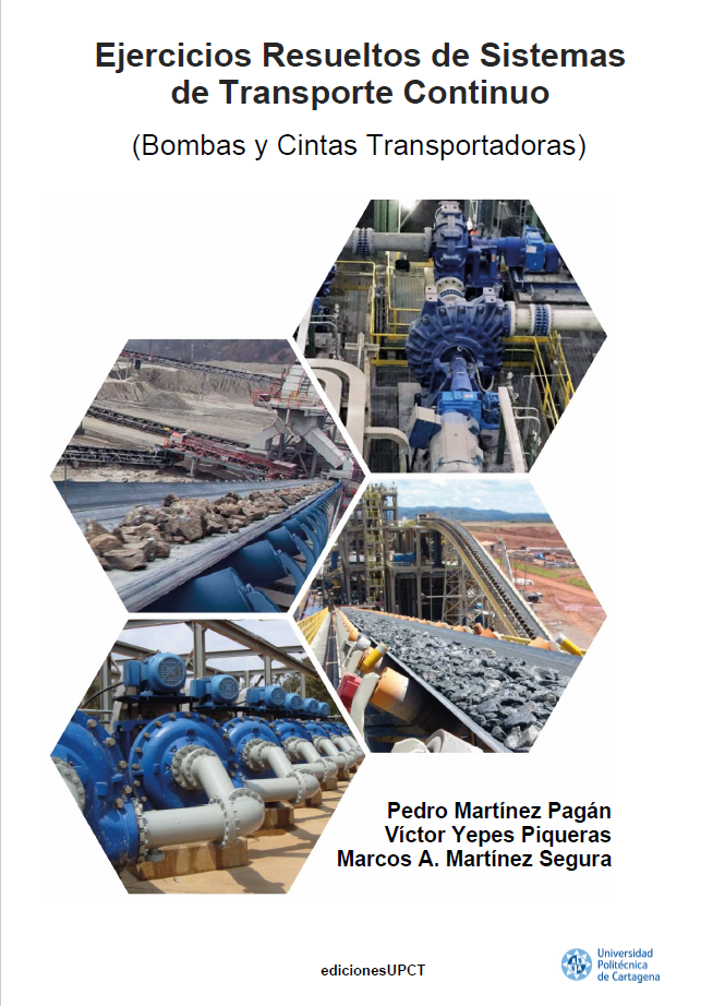 MARTÍNEZ-PAGÁN, P.; YEPES, V.; MARTÍNEZ-SEGURA, M.A. (2023). Ejercicios resueltos de sistemas de transporte continuo: bombas y cintas transportadoras. Ediciones UPCT. Universidad Politécnica de Cartagena, 284 pp.