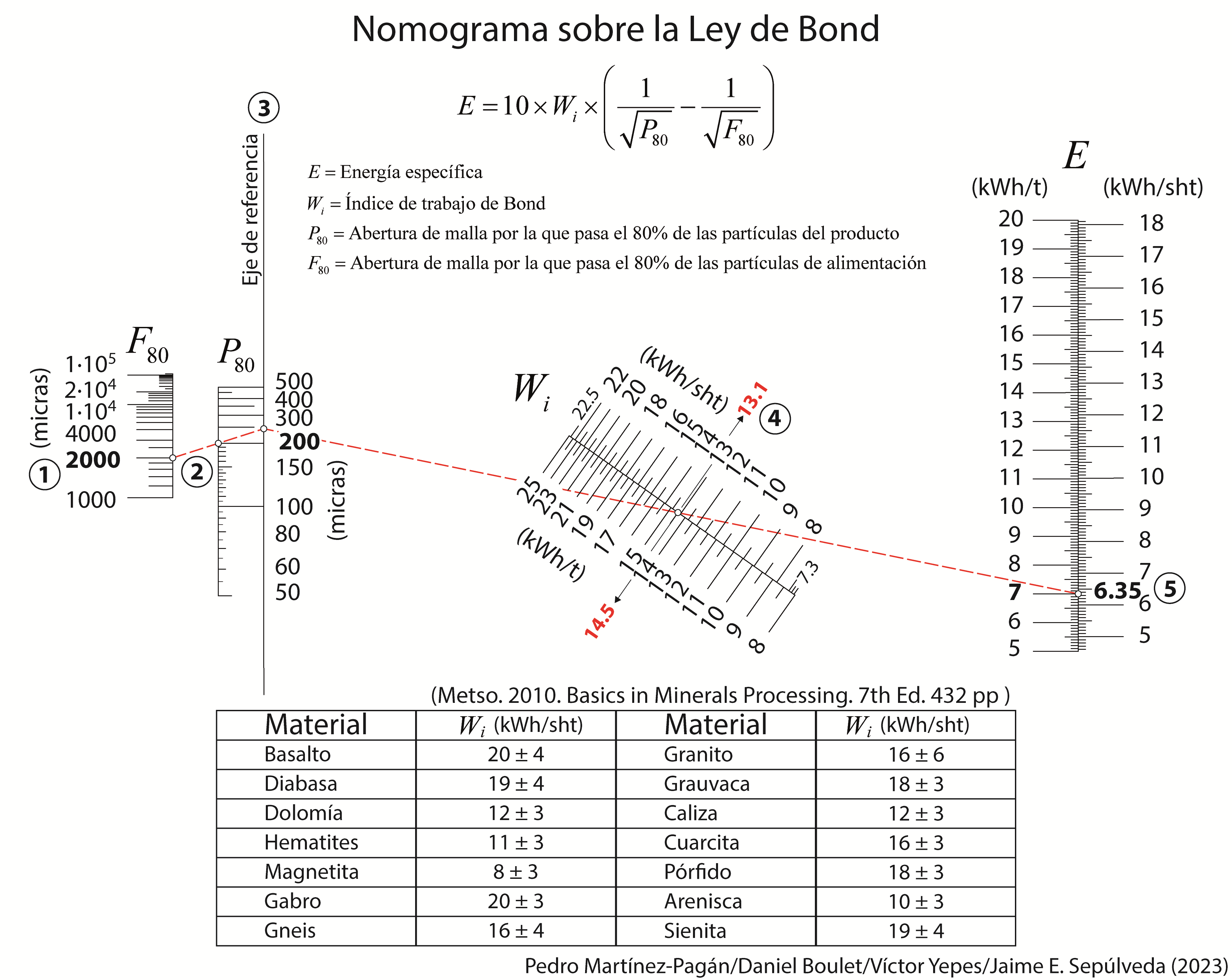 En un artículo previo, explicamos cómo se utiliza la Ley de Bond para calcular la energía necesaria para fragmentar un material, incluso proporcionando un ejemplo resuelto en el que se aplicó a un equipo de trituración para obtener un tamaño de áridos. En este artículo, presentaremos un nuevo nomograma que ha sido creado en colaboración con los profesores Pedro Martínez-Pagán, Daniel Boulet y Jaime E. Sepúlveda, específicamente diseñado para tamaños de partícula más pequeños. Este nomograma se emplea para una molienda con un molino de bolas para un tipo de mineral en particular. Esperamos que tanto el nomograma como el ejercicio resuelto sean de su interés.