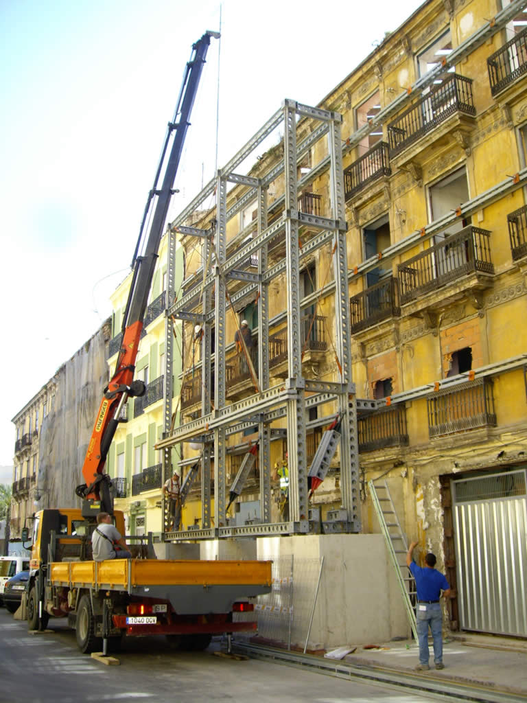 Por el contrario, un sistema de apeo supletorio se presenta como una estructura alternativa. Al entrar en carga, permite abordar la sustitución de aquellos elementos de la estructura afectados por daños. Esto implica ejecutar diversas operaciones auxiliares, como la realización de perforaciones en elementos verticales y horizontales, con el fin de otorgar a los apeos continuidad e identidad como una estructura autónoma. Este enfoque provoca un aumento de los costos en comparación con los apeos complementarios.