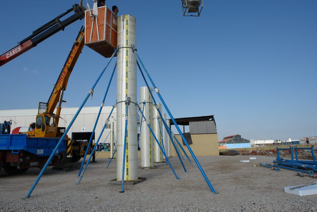 - “Cuadrado”: un sistema de encofrado para pilares con secciones cuadradas o rectangulares, obtenido mediante la combinación de un contramolde exterior cilíndrico y un molde interior de poliestireno expandido. La altura estándar es de 3 o 4 m, y las secciones pueden ser de cualquier combinación, desde 200 hasta 1000 mm. El aislamiento térmico del encofrado permite que el hormigón fragüe con su propia humedad.