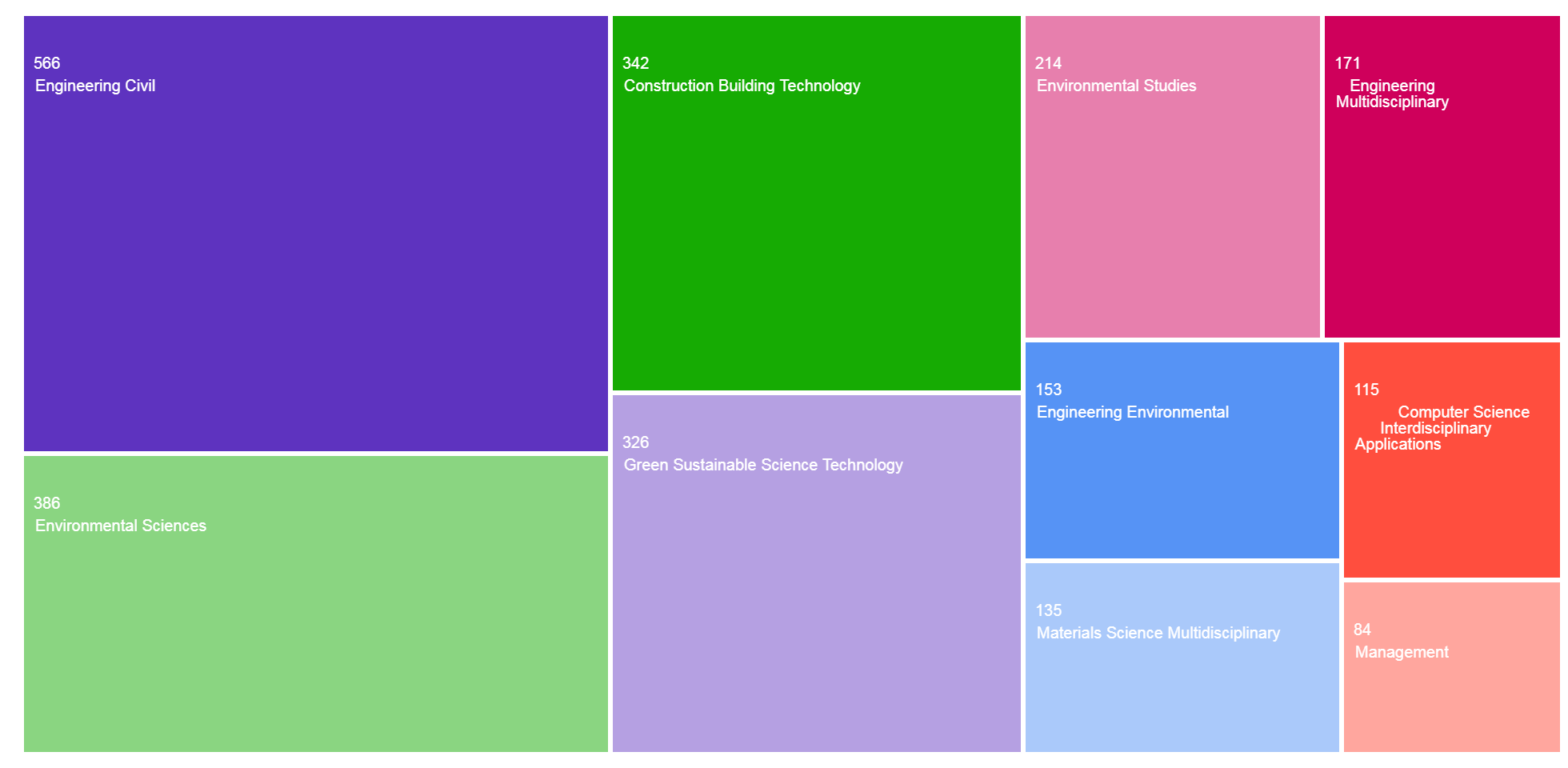 Por otra parte, si analizamos los campos de los artículos que citan mis trabajos, es en el área de ingeniería civil y en el de ciencias ambientales las áreas donde más referencias existen.