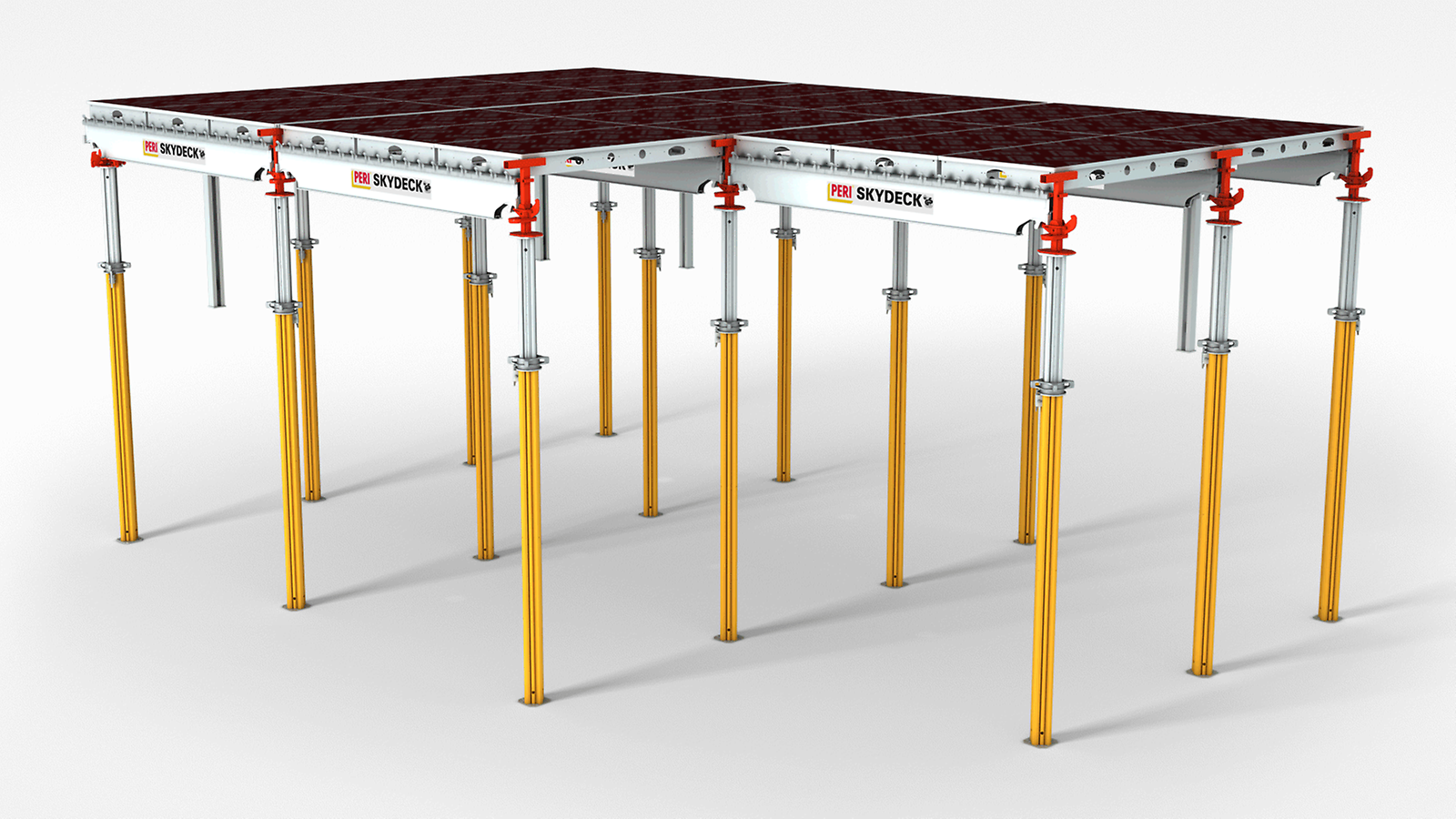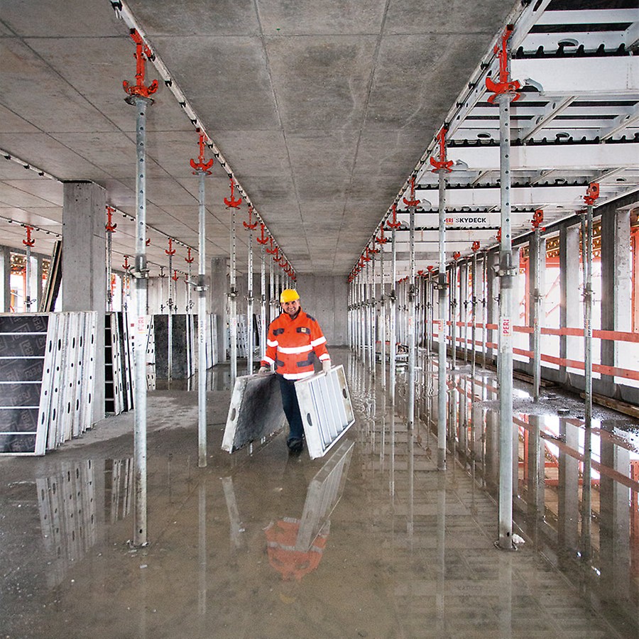 El encofrado se monta sin la necesidad de grúas u otros dispositivos de elevación, otorgando a los operarios un entorno de trabajo seguro y ergonómico. El montaje es sistemático con piezas ligeras, lo que reduce los plazos de ejecución. Los tableros de encofrado pueden integrarse en el emparrillado o colocarlos después de haber instalado dicho emparrillado, sirviendo como plataforma para su instalación.