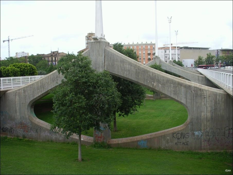 Se compone de dos tableros de hormigón de 20 m de ancho, separados entre sí otros 20 m, unidos por cuatro pilas de doble ménsula sujetas por un único fuste, a modo de candelabro. De esta pila central sobresalen farolas blancas de 15 m de altura. La unión entre el tablero y la pila se caracteriza por su rigidez, pues la intersección forma parte tanto del tablero longitudinal como de la ménsula transversal.