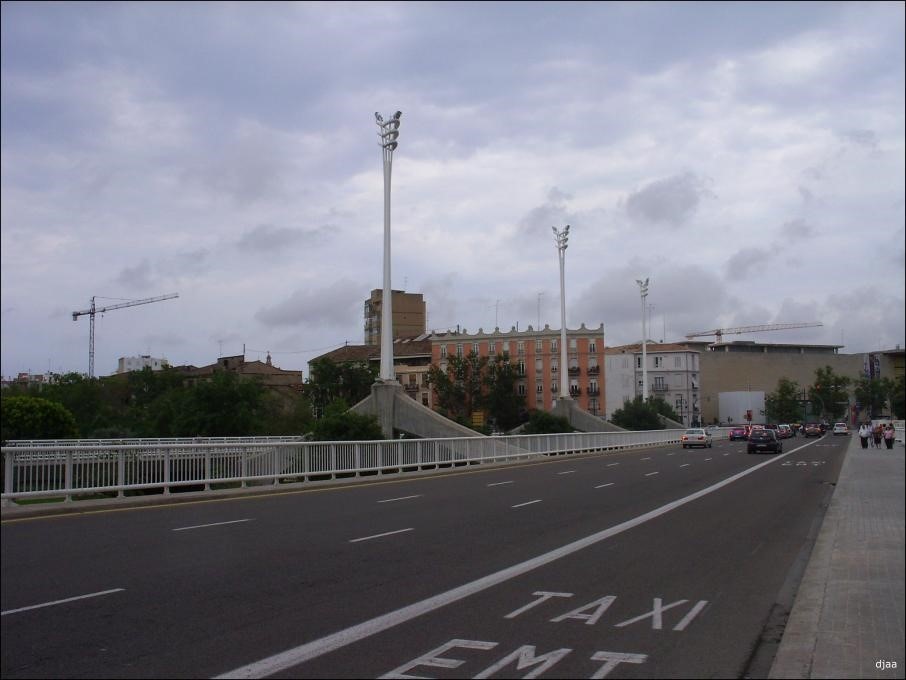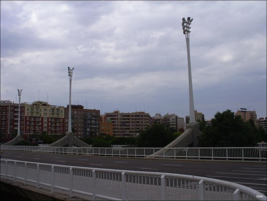 Este puente (1993-1998) fue proyectado por Norman Foster en colaboración con la oficina Carlos Fernández Casado, S.L. (Leonardo Fernández, Javier Manterola, Miguel A. Ástiz, José Cuervo y Agustín Sevilla). Su construcción la realizó FCC Fomento de Construcciones y Contratas, con un presupuesto de 2.094 millones de pesetas, con un plazo de ejecución de 18 meses que terminó en junio de 1998. La estructura cruza el Jardín del Turia, conectando los barrios de Tendetes con los de El Carmen y El Botánico. Además, enlaza las calles Pare Ferrís y Mauro Guillén, así como la avenida Menéndez Pidal con el Paseo de la Petxina y las calles Guillem de Castro, Na Jordana y Blanqueria. En el extremo sur del puente se encuentra el IVAM, que da nombre al conjunto de las Arts, y el Centro Cultural la Beneficència, que alberga el Museo Etnológico de Valencia.