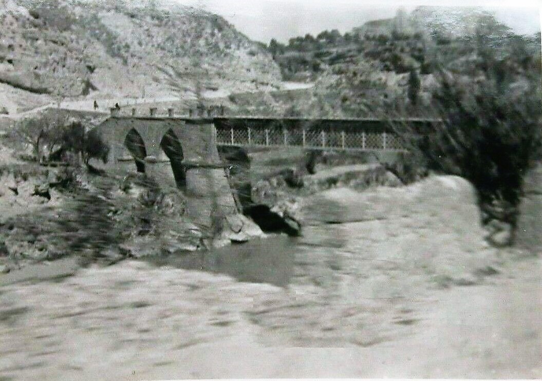 Figura 2. Puente viejo sobre 1940. https://loboquirce.blogspot.com/2016/06/puentes-de-murillo-de-gallego-huesca.html