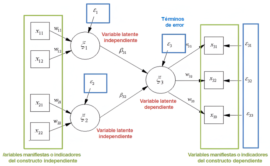 - Restricciones en la estructura del modelo: Cada variable latente debe estar conectada a otra mediante una relación estructural, lo que puede ser restrictivo en algunos contextos.
