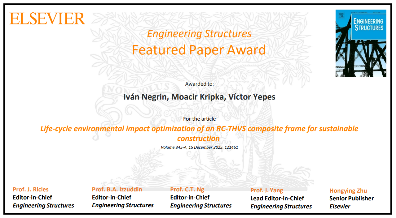 Desde nuestro equipo, agradecemos este reconocimiento y esperamos que el artículo contribuya a seguir impulsando la investigación en ingeniería estructural sostenible y en el análisis del ciclo de vida.