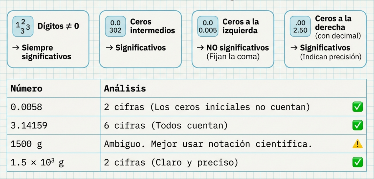 En el lenguaje técnico, los números no solo indican cantidades, sino que también expresan confianza. No es lo mismo informar de un peso de «1,5 g» que de uno de «1,500 g». Las cifras significativas son los dígitos que realmente aportan información sobre la precisión de nuestra medición.