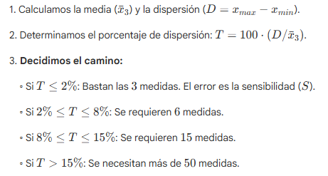 Pero cuando la precisión es crítica, recurrimos a la estadística. El proceso siempre comienza con 3 medidas iniciales para calcular el criterio de dispersión (T):