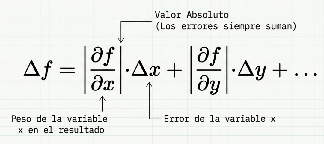 En metrología, trabajamos bajo la filosofía del caso más desfavorable. Si la medida A presenta un error por exceso y la medida B, por defecto, al restarlas (A – B) el error total resultante no disminuye, sino que aumenta. Las incertidumbres nunca se anulan; siempre se acumulan.