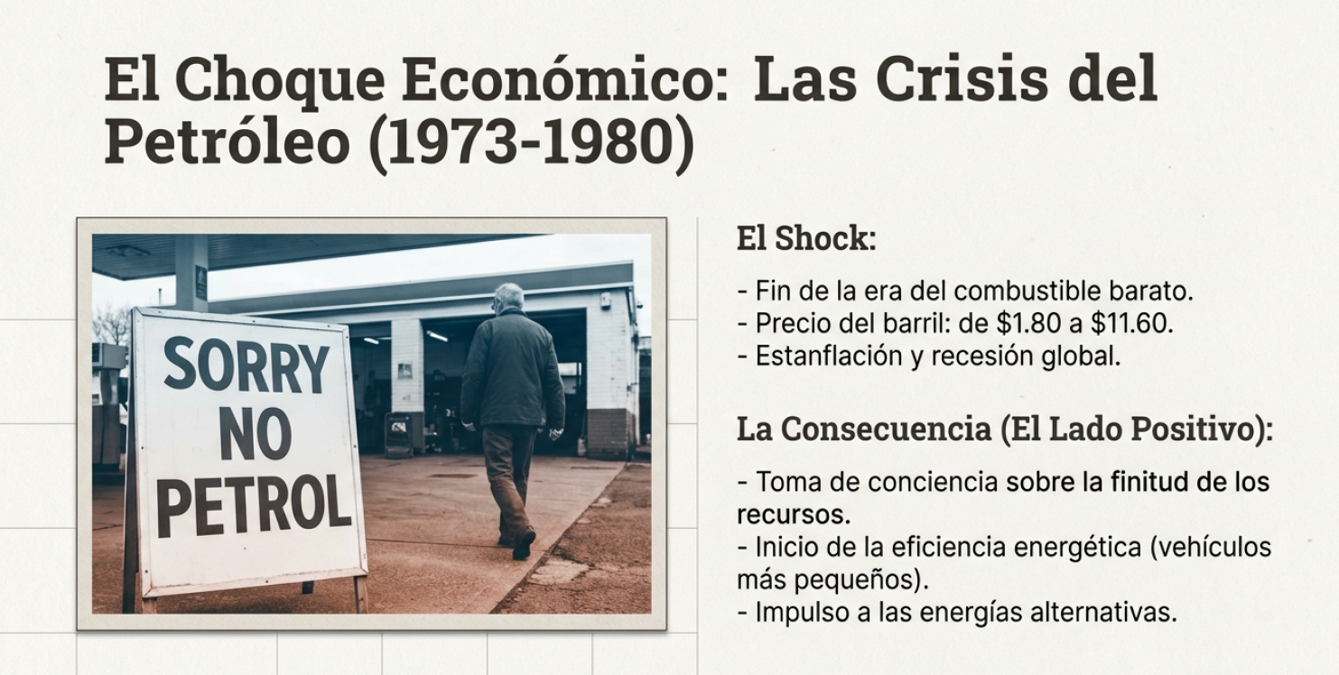 La recesión y el desempleo en el sector manufacturero obligaron a la industria a reinventarse bajo el lema de la eficiencia. Lo que comenzó como una medida de supervivencia económica terminó sentando las bases de la sostenibilidad energética moderna y del diseño industrial consciente.