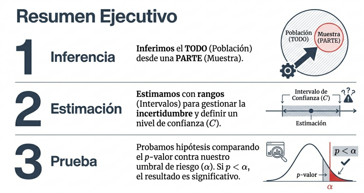La inferencia estadística es la ciencia que se ocupa de gestionar la incertidumbre para alcanzar la precisión. Nos enseña que, si bien es imposible tener certeza absoluta sobre una población masiva, el rigor matemático nos permite actuar con una seguridad asombrosa.