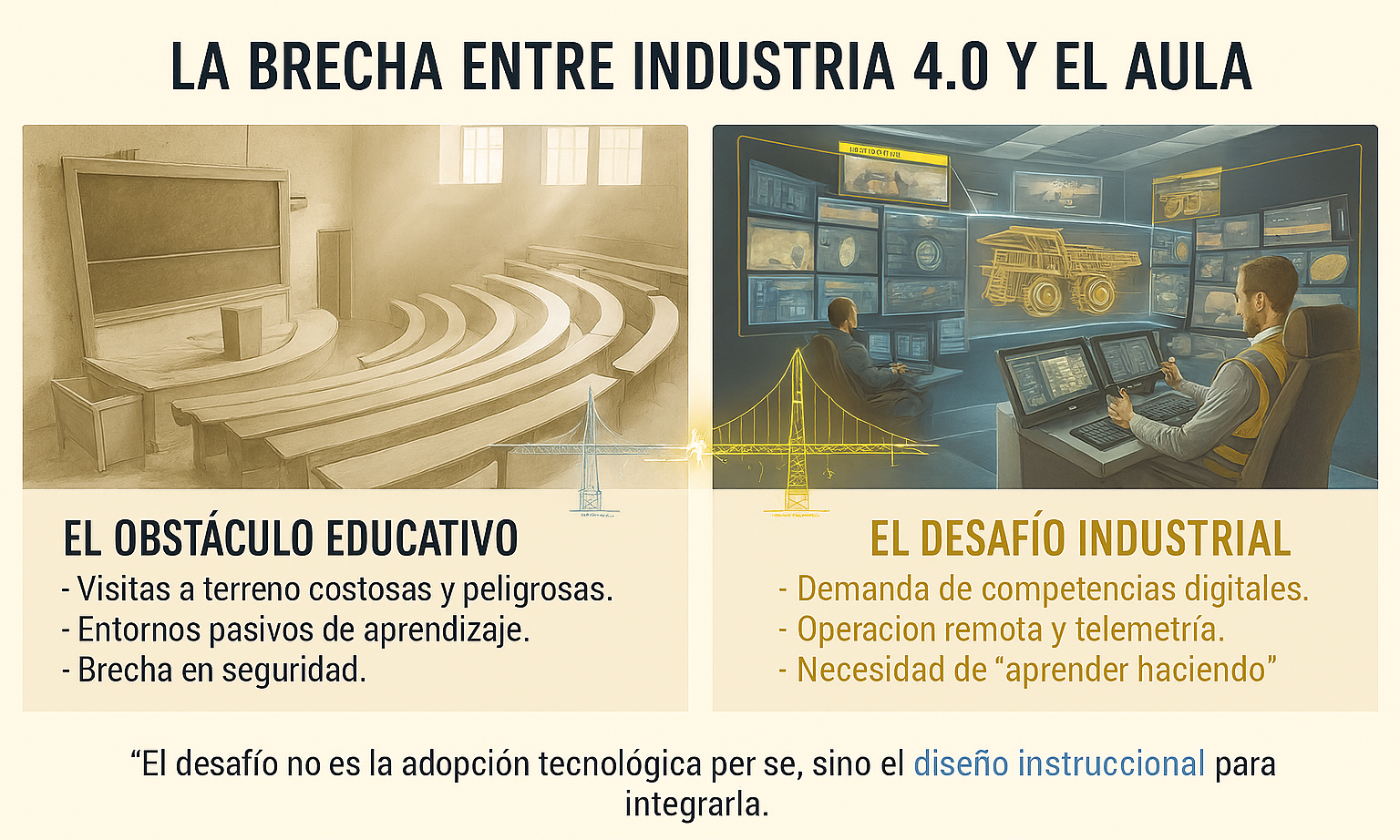Este vacío no se debe a una falta de tecnología, sino a la ausencia de una estructura pedagógica sistemática en las aplicaciones existentes. Mientras otras disciplinas han estandarizado el uso de herramientas inmersivas, la minería presentaba un «punto ciego» metodológico. Esta oportunidad permitió el desarrollo del marco SEBAS, diseñado para dotar de rigor académico a la visualización de equipos y la seguridad operativa.