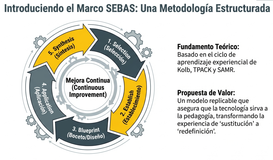 La eficacia de la RA en ingeniería no depende de la novedad del software, sino de su alineación con objetivos pedagógicos claros. El estudio de Donaire et al. propone el marco SEBAS, una metodología procedimental que garantiza que cada actividad inmersiva cumpla una función estratégica en el aprendizaje.