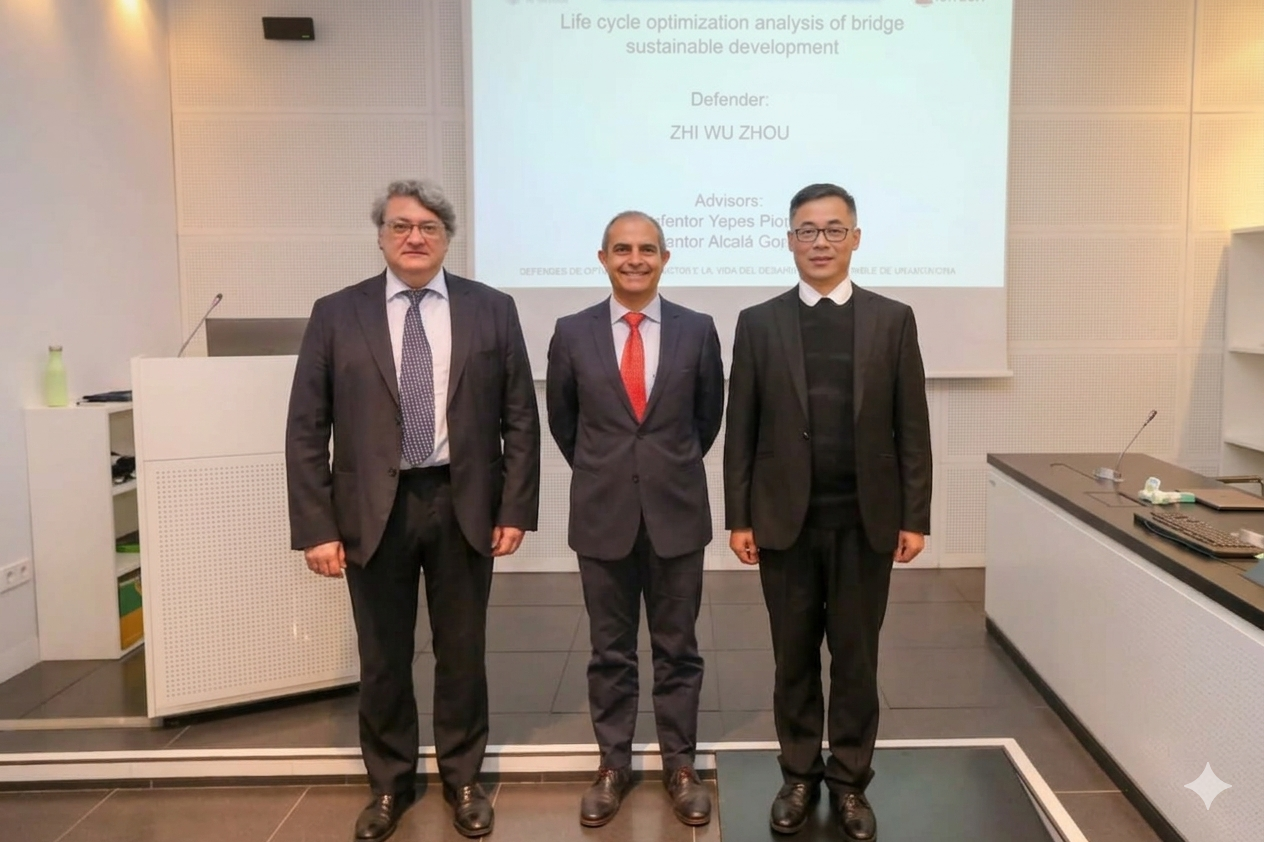 El éxito del Dr. Zhou en China es, en gran medida, una extensión del prestigio de la escuela de ingeniería estructural española. El Dr. Zhou desarrolló su capacidad analítica y su visión innovadora durante su etapa doctoral en la Universitat Politècnica de València (UPV), bajo la dirección de dos referentes internacionales: los profesores Víctor Yepes y Julián Alcalá.