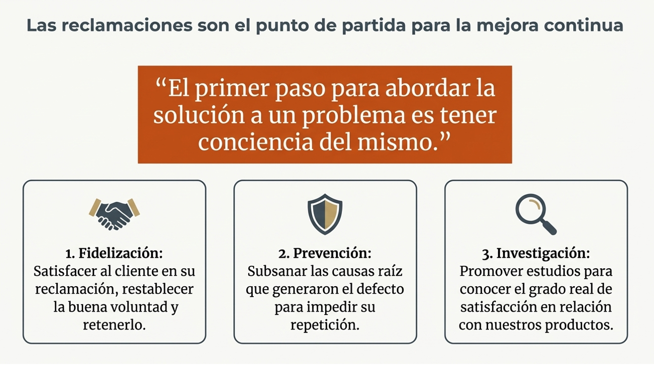 «El primer paso para abordar la solución de un problema es ser consciente de su existencia. Las reclamaciones son el punto de partida para la mejora continua».