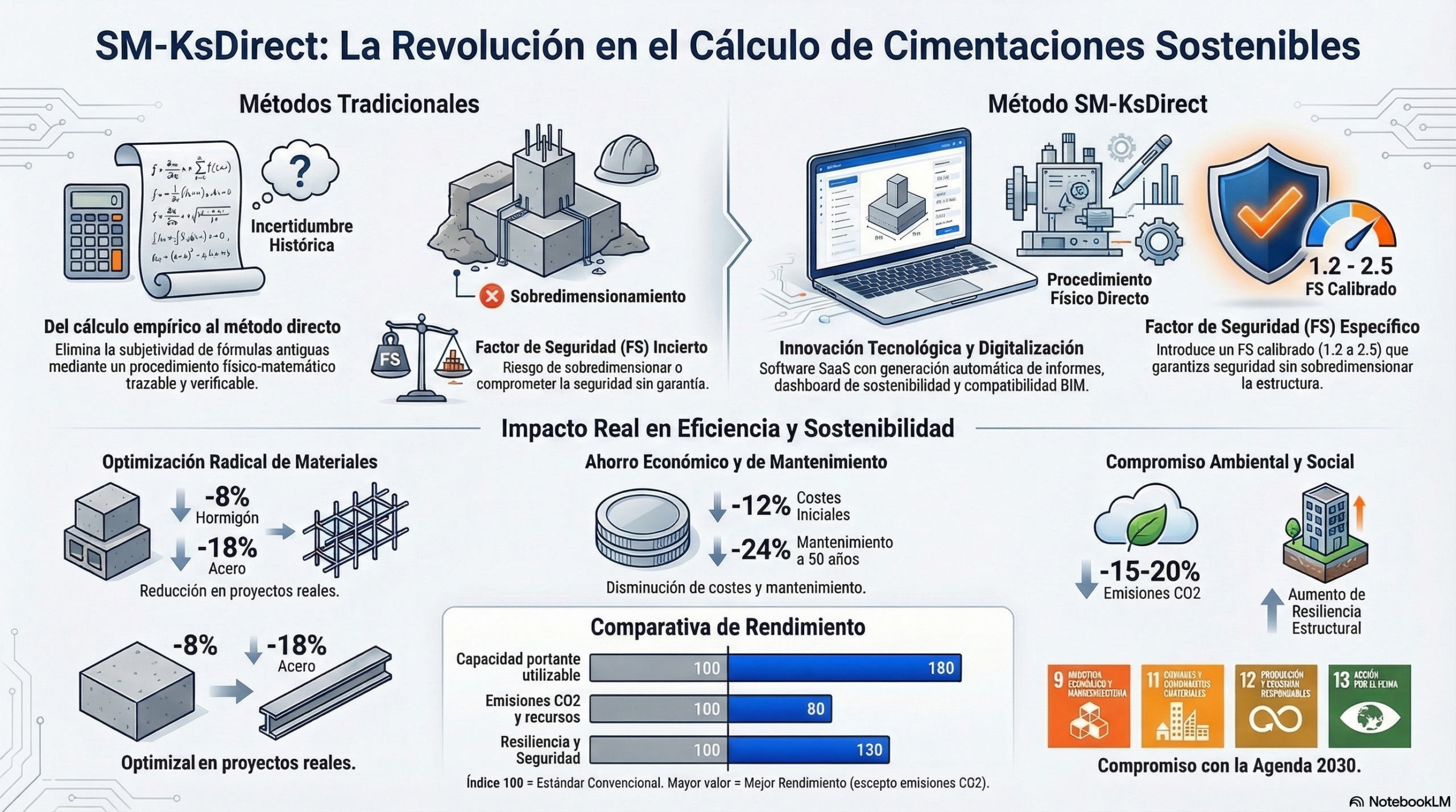 | Capacidad portante utilizable | Base 100 | 180 | +80% de optimización |