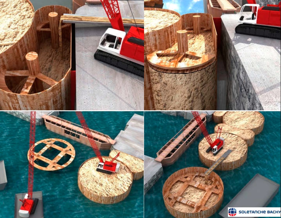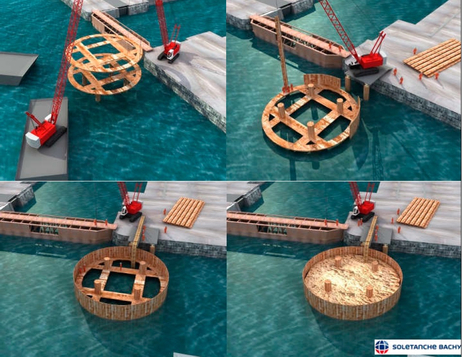 Figura 6. Ataguía celular para dique de Carena. https://www.soletanche-bachy.com/es