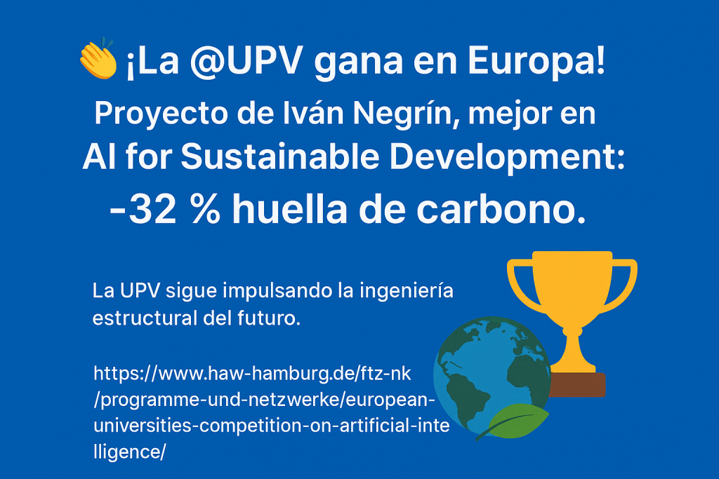 El trabajo galardonado, desarrollado en el ICITECH por el doctorando Iván Negrín, demuestra cómo la inteligencia artificial puede transformar el diseño estructural para hacerlo más sostenible y resiliente, con reducciones de hasta un 32 % en la huella de carbono respecto a los sistemas convencionales. Este logro posiciona a la UPV como un referente europeo en innovación ética e impacto y reafirma su compromiso con la búsqueda de soluciones frente al cambio climático y al desarrollo insostenible.