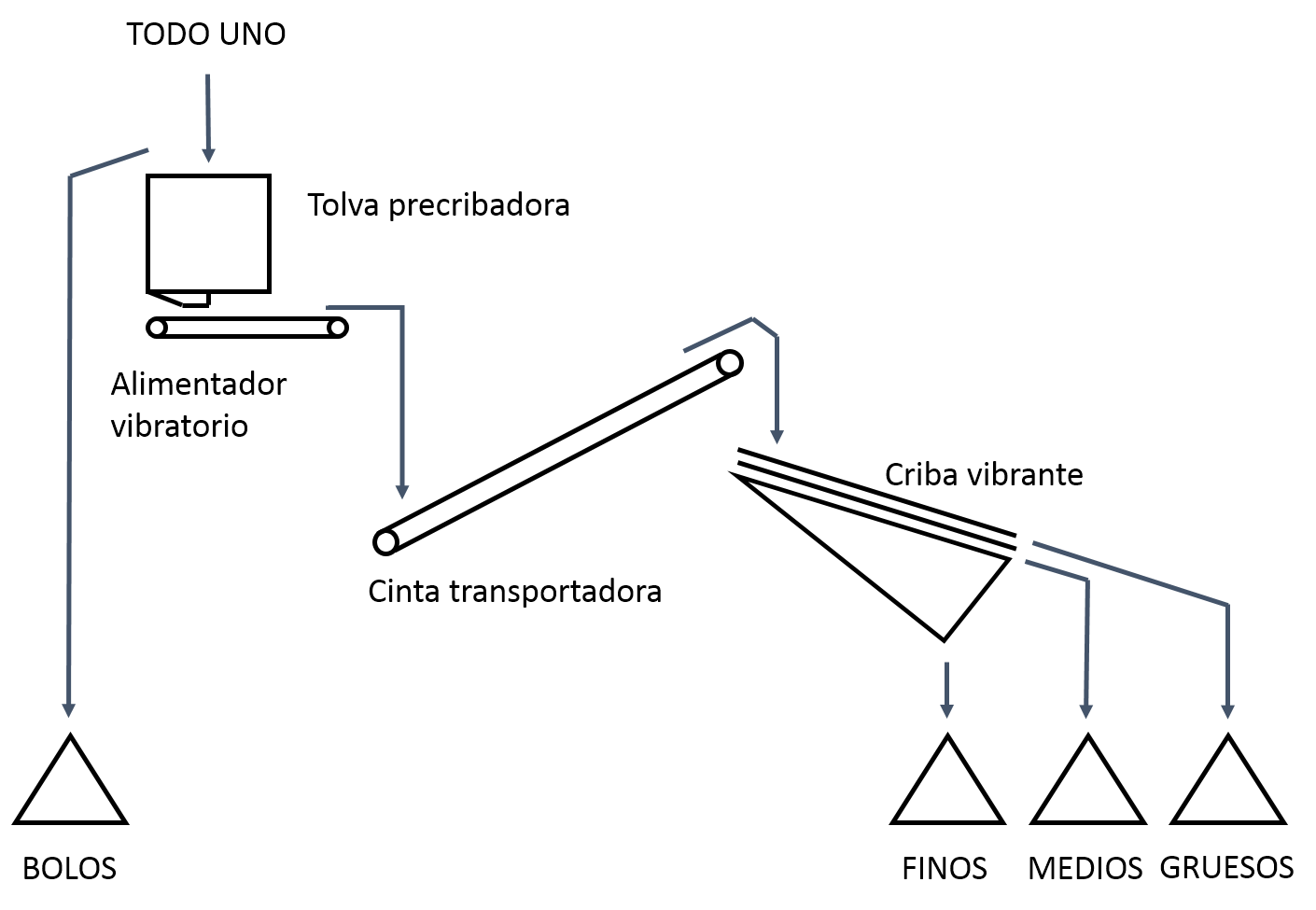Figura 2. Esquema de una planta de clasificación por vía seca. Elaboración propia, basado en Vázquez García (1998).
