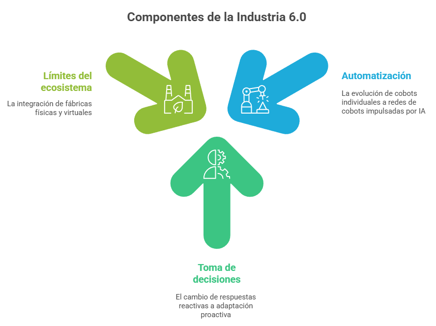 Sin embargo, la Industria 6.0 no es simplemente el siguiente paso lógico en esta progresión. Se trata de un salto revolucionario que está a punto de redefinir la esencia de la creación, la inteligencia y la realidad en el mundo de la fabricación. Prepárese para ir más allá de la simple automatización y descubrir un ecosistema industrial que piensa, crea y se regenera por sí mismo.