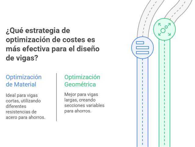 El primer descubrimiento clave del estudio es que la estrategia óptima para reducir costes depende fundamentalmente de la longitud de la viga (vano). Este hallazgo desafía el enfoque de «talla única» y da lugar a dos conclusiones interesantes:
